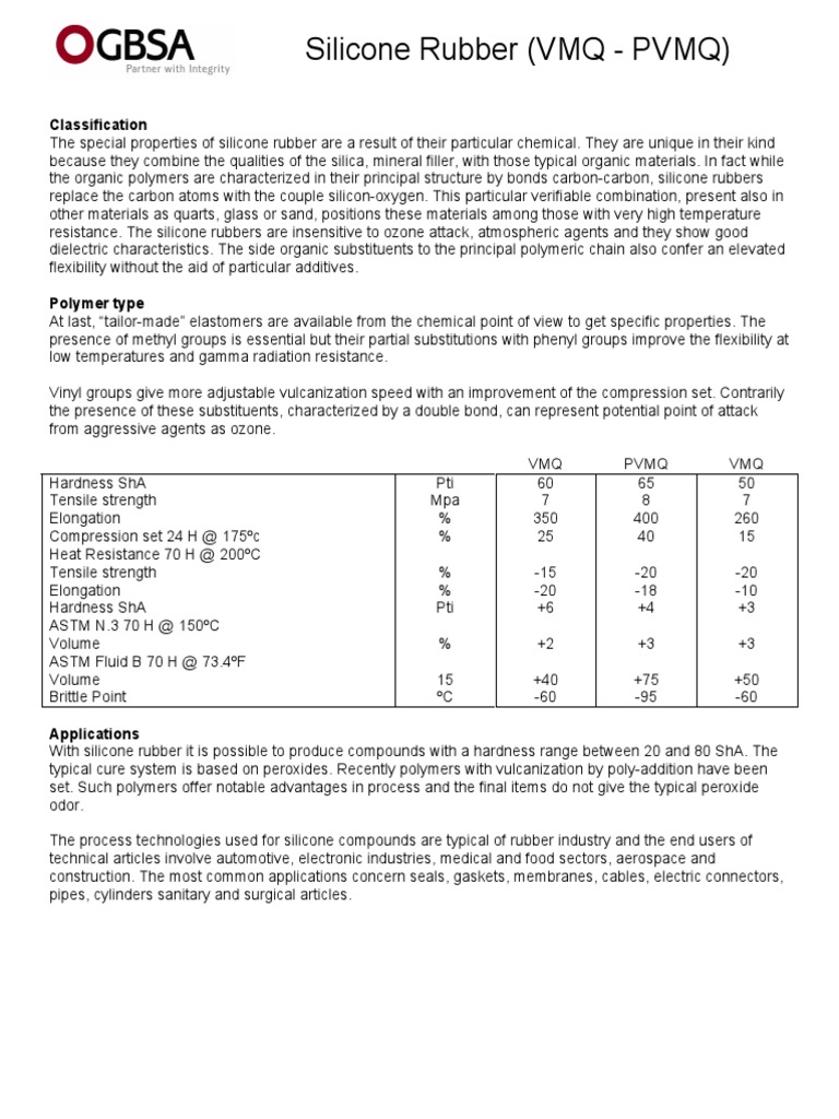 Vmq silicone rubber properties.