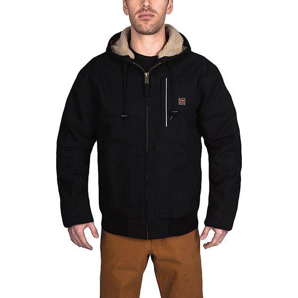 Walls 35720w men s mid weight insulated hooded jacket have key features such as heavy weight 100 cotton duck heavy weight 100 cotton denim heavy weight fleece lining in body and polyester quilted lining on sleeves.